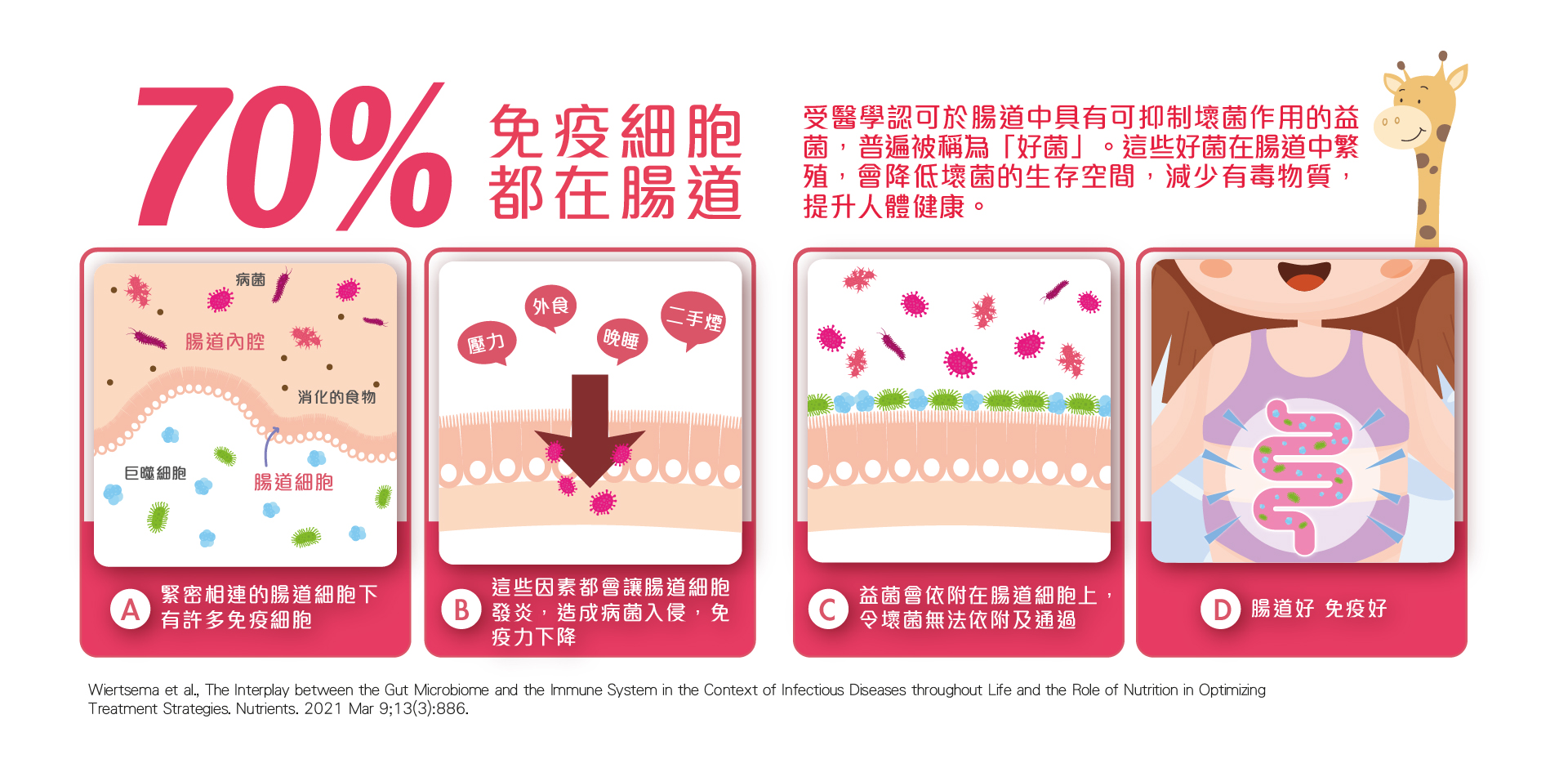 5) 臨床研究表明,特定的益生菌及其代謝物可以減少兒童胃腸道疾病,增強免疫反應,並降低過敏和呼吸道感染症狀的發生率。
